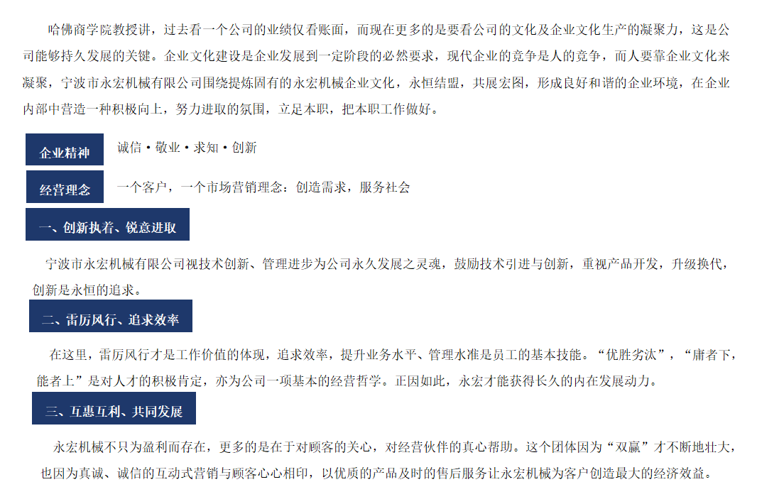 公司位于浙江省宁波市洪塘经济开发区,地理环境优越,交通便捷,公司成立以来,本着以科技创新进步为导向,以“用户是上帝”,“质量为生命”的宗旨,不断引进国内外先进技术及加工设备,完善提高自身产品,具有完善售后服务。在国内外广大用户中享有崇高的信誉。